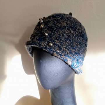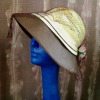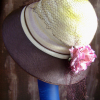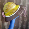 A way too small "straw" hat got painted in an irregular manner, and attached to a lovely brown straw brim.