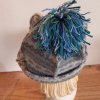 This one has a wire in the brim, and a floppy hndmade multi colored pompom