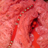 I made this one from the stuffing from a jacket that I ruined. I dyed the stuffing and coiled it in on itself, hiding special tokens among the folds.