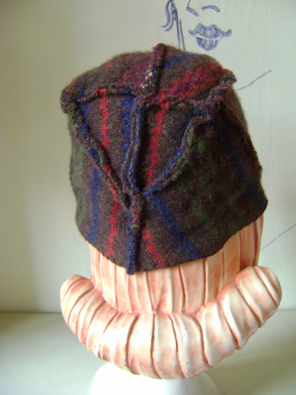 The hats come together as they will. This one got a brim with a couple of vintage buttons.