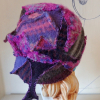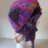 So many pieces of upcycled wool! Blanket stitched together with purple embroidery thread.