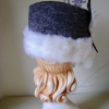 Cut apart a fedora, used the top, trimmed it with "fur"and bits and bobs of wool, vinrtage buttons.