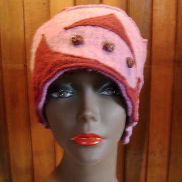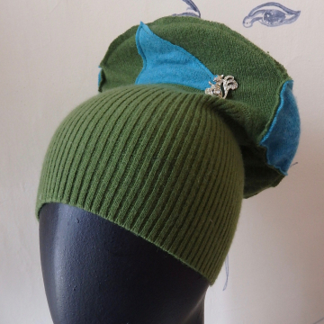 Refashioned, reshaped vintage hat, trimmed with vintage velvet ribbon and buttons