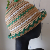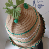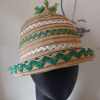 Straw hemp refashioned hat with vintage trims and buttons, fits up to 22"