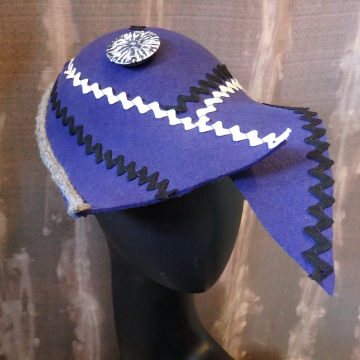 Tall Velvet Hat with Velvet and Fur PomPoms