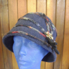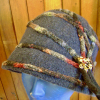 A wool blend boring hat, which is a gray/navy color, enhanced with some felted seams from a sweater becomes a cute cloche, especially because of the lil' delicate vintage pin.