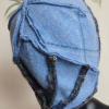 Sweet little hat with a chin strap made from a subtle argyle patterned upcycled sweater.