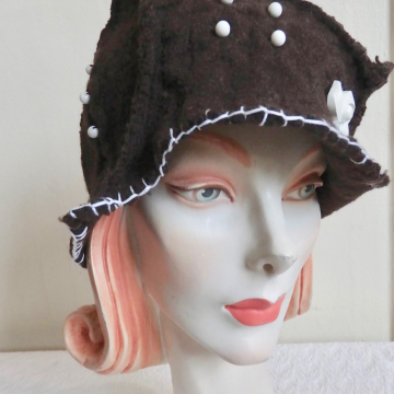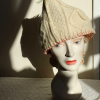 A coupla vintage buttons, in orange, complete this hat for a brave soul.