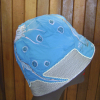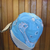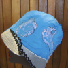 The paintings were quick doodles I did a while back on one piece of fabric. I cut them ot and sewed them onto a hat shape over a vintage form.