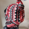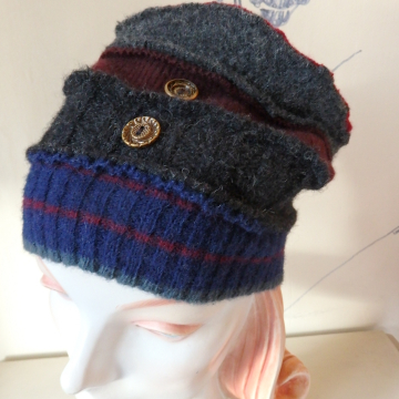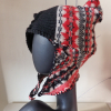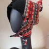 Swirly assymetric balaclava, blanket stitched edge
