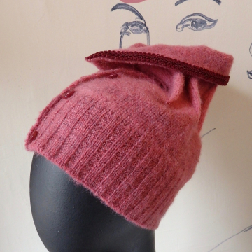 Satiny peacock feather pattern crown, geometric satiny top on one side.