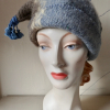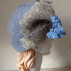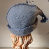 Cozy pale bue hat with a tassel.