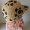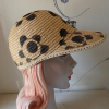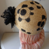 -with a bunch of tiny paint dots around the brim, and a vintage black bead holding on a blace lace flower
