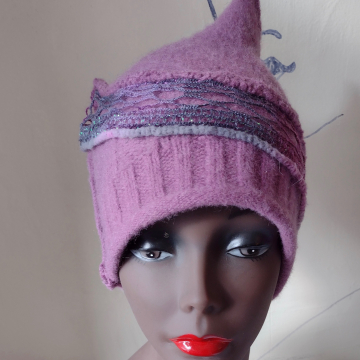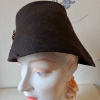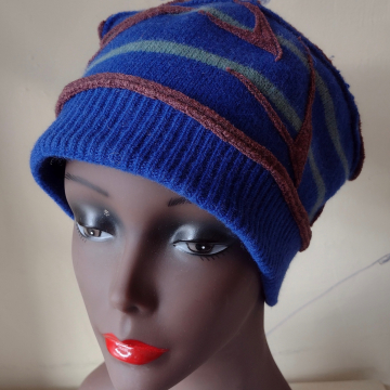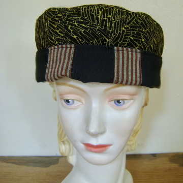 A reshaped, refashioned vintage hat, stamped lightly by an Indian woodblock, stitched round and round.