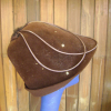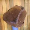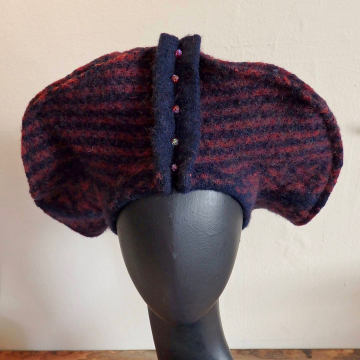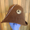 It was a beautiful chocolate brown rather shapeless hat that the moths had nibbled on a bit. I collaborated with them by adding some gold studs to their marks.