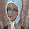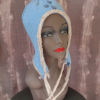 Baby blue lightweight felted warm. hat. Wear it tied or not - plenty of dangly options!