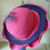 The brim of that other navy sunhat got attached and pink bri gathere in a wave with vintage red buttons.