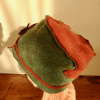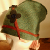 Very snuggly hat, upcycled from 2 different cashmere sweaters. Little felt flowers complete the look!