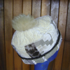 The top is an assymetric work of wedges, topped with a PomPom from a vintage hat.