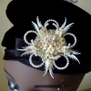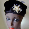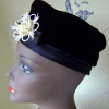 A refurbished black velvet pillbox, with an amazing, but dangerous brooch!