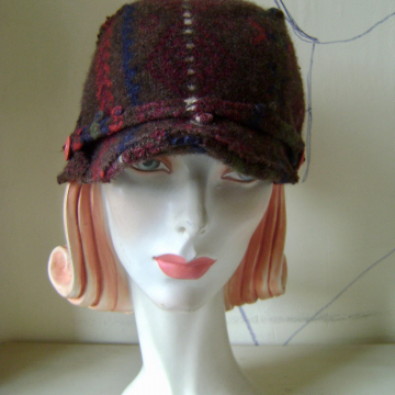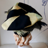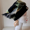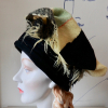 Very lightweight wool vintage scarf attached to a rich black wool from a vintage coat. "Pearly" pin completes
