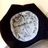 The velvet brim is from a vintage hat, a deep navy blue.