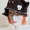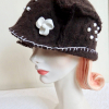 upcycled thick chocolatey brown cable knit with white beads and a vintage button.