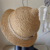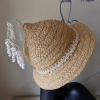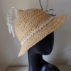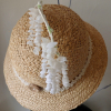 Vintage Italian straw hat with dangling flowers, lace and a button