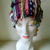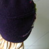 Indeed, I wove on a loom many upcycled sweater seams, and attached a back of eggplant shade wool.